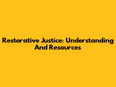 Restorative Justice: Understanding And Resources