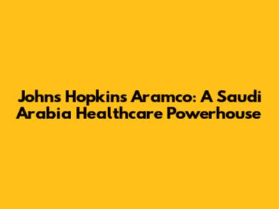 Johns Hopkins Aramco: A Saudi Arabia Healthcare Powerhouse