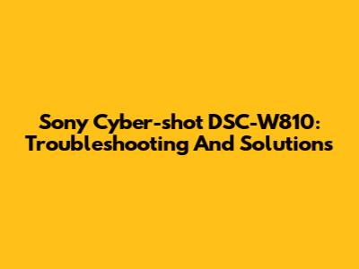 Sony Cyber-shot DSC-W810: Troubleshooting And Solutions
