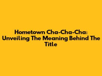 Hometown Cha-Cha-Cha: Unveiling The Meaning Behind The Title